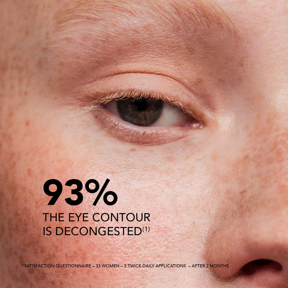 Formulated with 96% natural-origin ingredients, its light gel texture refreshes and has an instant decongesting effect. The fragrance-free formula has been dermatologically and ophthalmologically tested. Suitable for sensitive eyes.